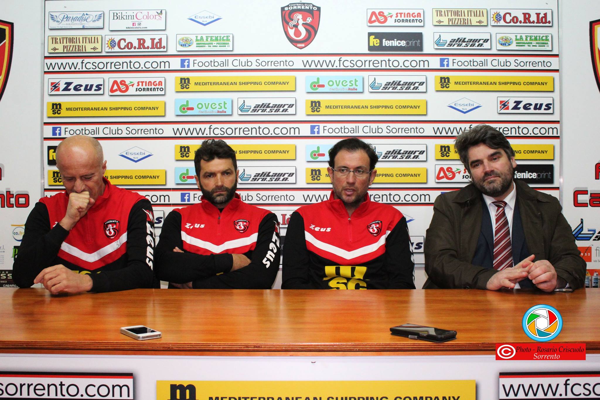 Determinazione ribadita nelle stesse parole del mister Coppola: “Insieme ai miei collaboratori affrontiamo con grande entusiasmo questa sfida, convinti dalla serietà di questa società e dal valore dei calciatori a nostra disposizione. Inutile disperarsi per il ritardo in classifica, l’unica cosa da fare è lavorare sodo e guardare avanti con speranza e fiducia per raggiungere l’obiettivo che è quello di riportare il Sorrento in una categoria più consona al suo blasone. A testa bassa, con grinta e cattiveria agonistica, affrontando un ostacolo per volta”.