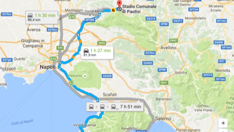 MAPPA PER RAGGIUNGERE LO STADIO COMUNALE "G. RUSSO" DI PAOLISI