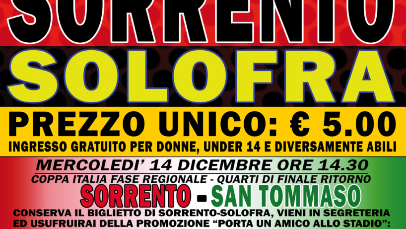 Il Football Club Sorrento rende noto le modalità di vendita dei tagliandi di ingresso per assistere alla gara Sorrento-Solofra, che si disputerà domenica 11 dicembre alle ore 14,30 presso lo Stadio Italia di Sorrento e valevole per la 14° giornata del…