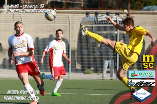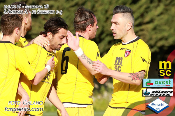 Al "Varone" di S.Antonio Abate, il F.C.Sorrento conquista la 15a vittoria e mantiene inalterato il vantaggio in vetta alla classifica del girone B. Tutto facile per la compagine di mister Ferraro che sblocca il risultato al 12' con capitan…